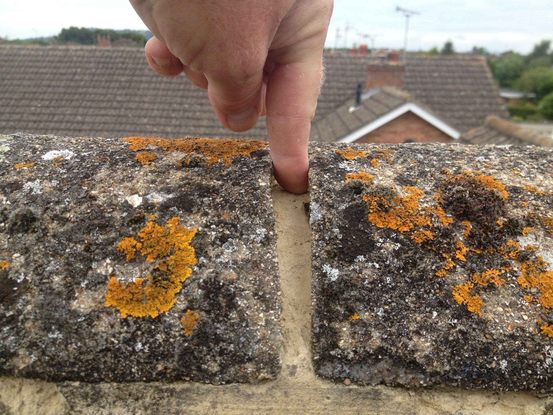 Coursing gaps to appear which in time will allow rain water to soak into the pointing joints further damage to the wall. In some cases rain water has got into the cavity and has created condensation, basement rooms are more prone to this as the cold air from the outside meets the warm air inside with damp from the rain water dripping down the cavity.
